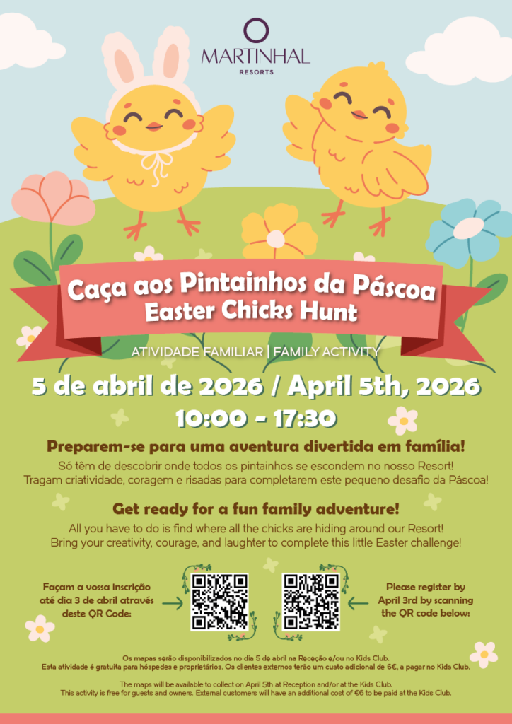 Explore our Resort and look for the 5 Easter chicks🐥 hidden in the locations marked on the map. Start wherever you like and enjoy the hunt at your own pace.